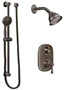 moen shower faucet thermostatic rain rubbed bronze system oil body sprays controls volume systems chrome hand slide bar close exacttemp